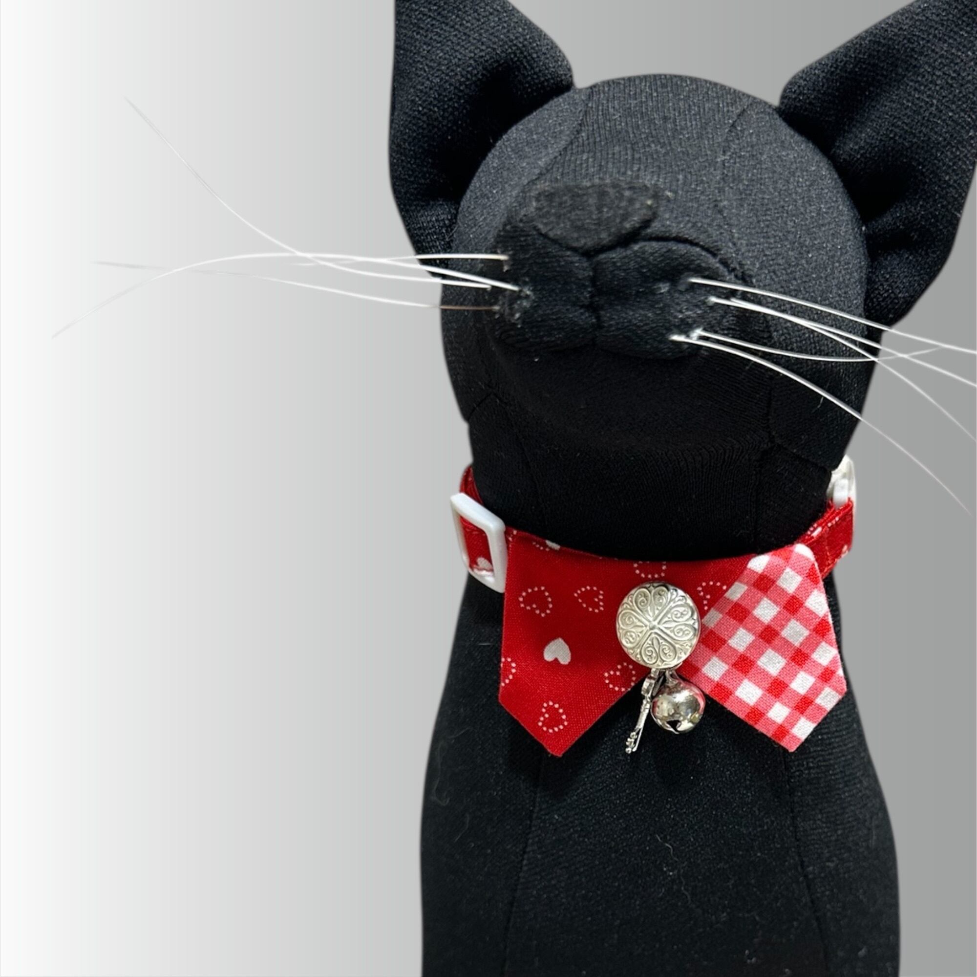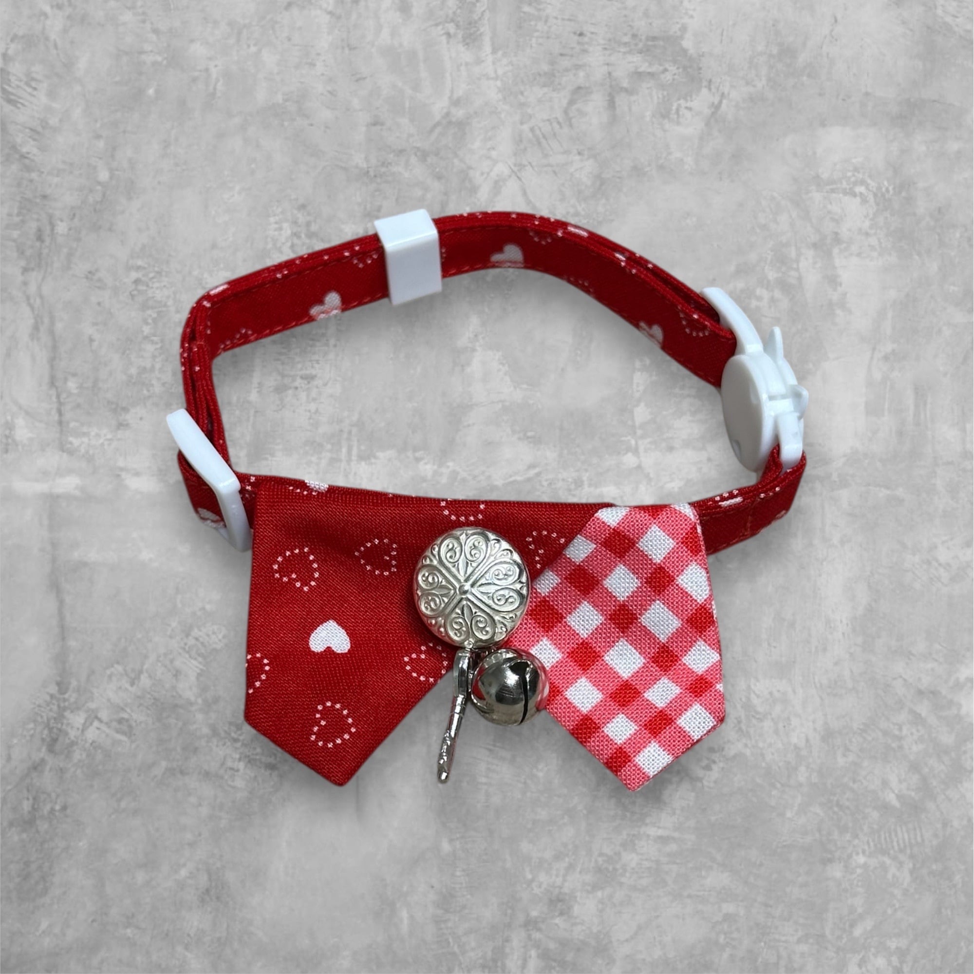 <猫用首輪>シャツ襟風コンチョ付猫首輪〈ハート×チェック〉