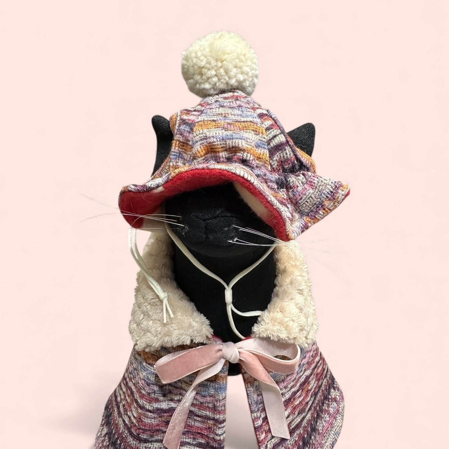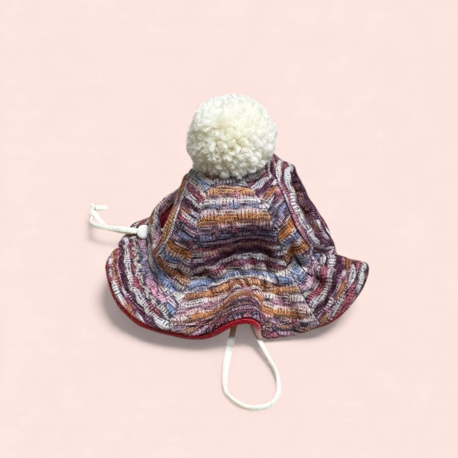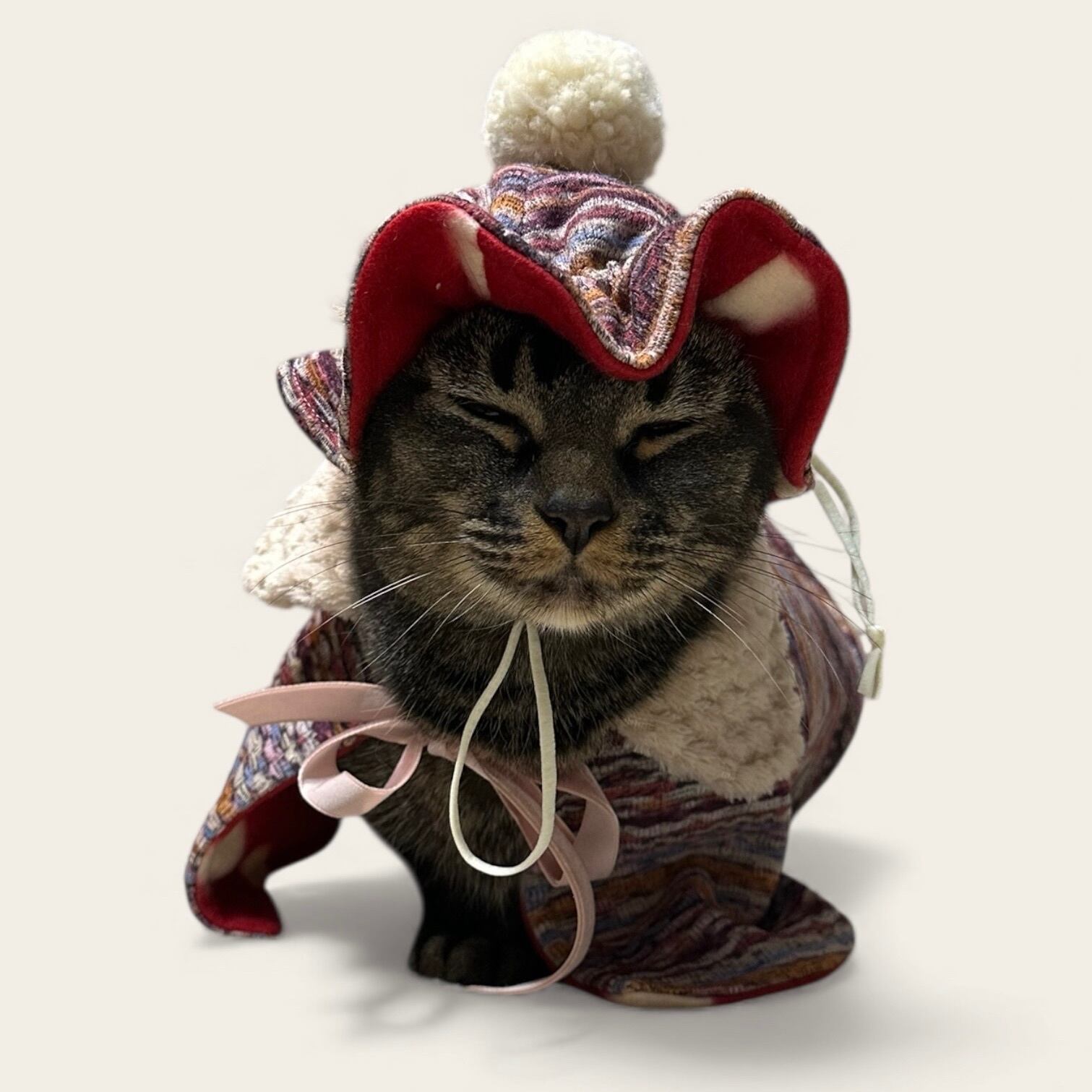 <猫用帽子>ポンポン付かすりボーダーニットのチューリップハット!