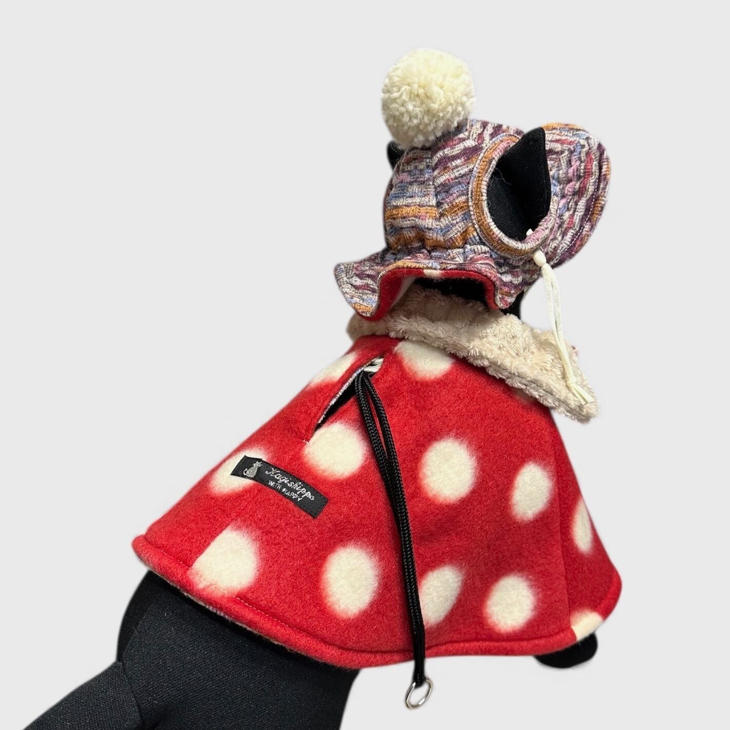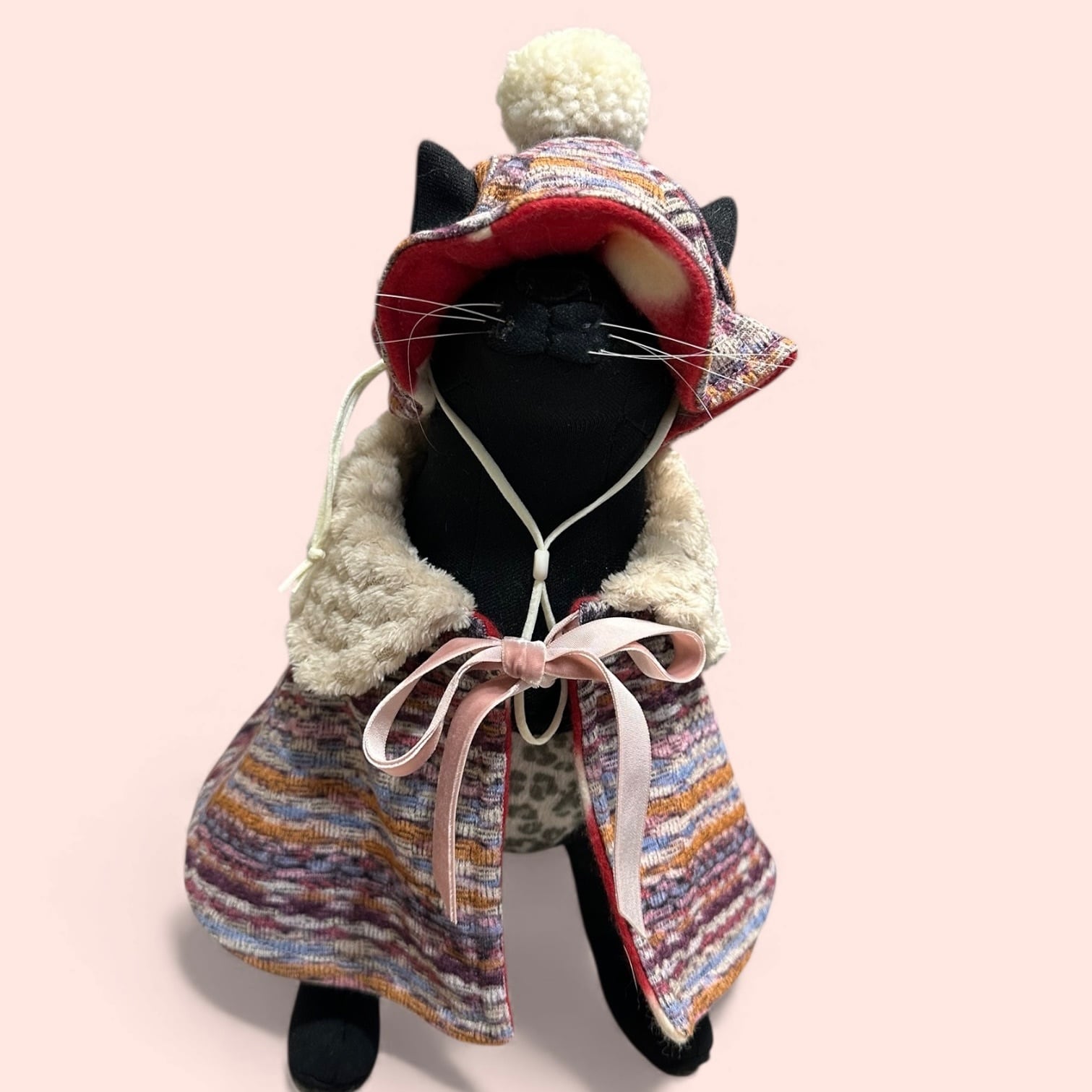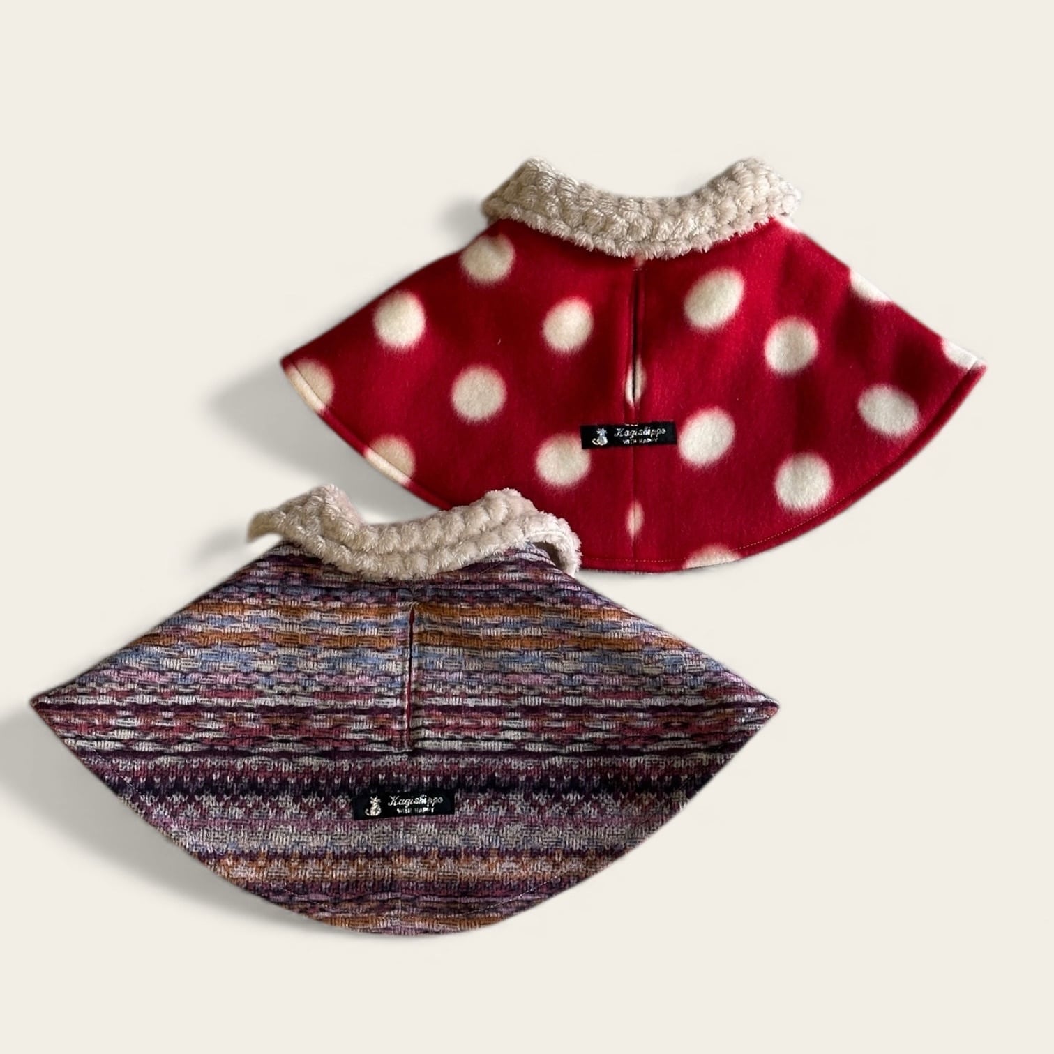 〈猫服〉かすりボーダー&フリースのお散歩リバーシブルケープ