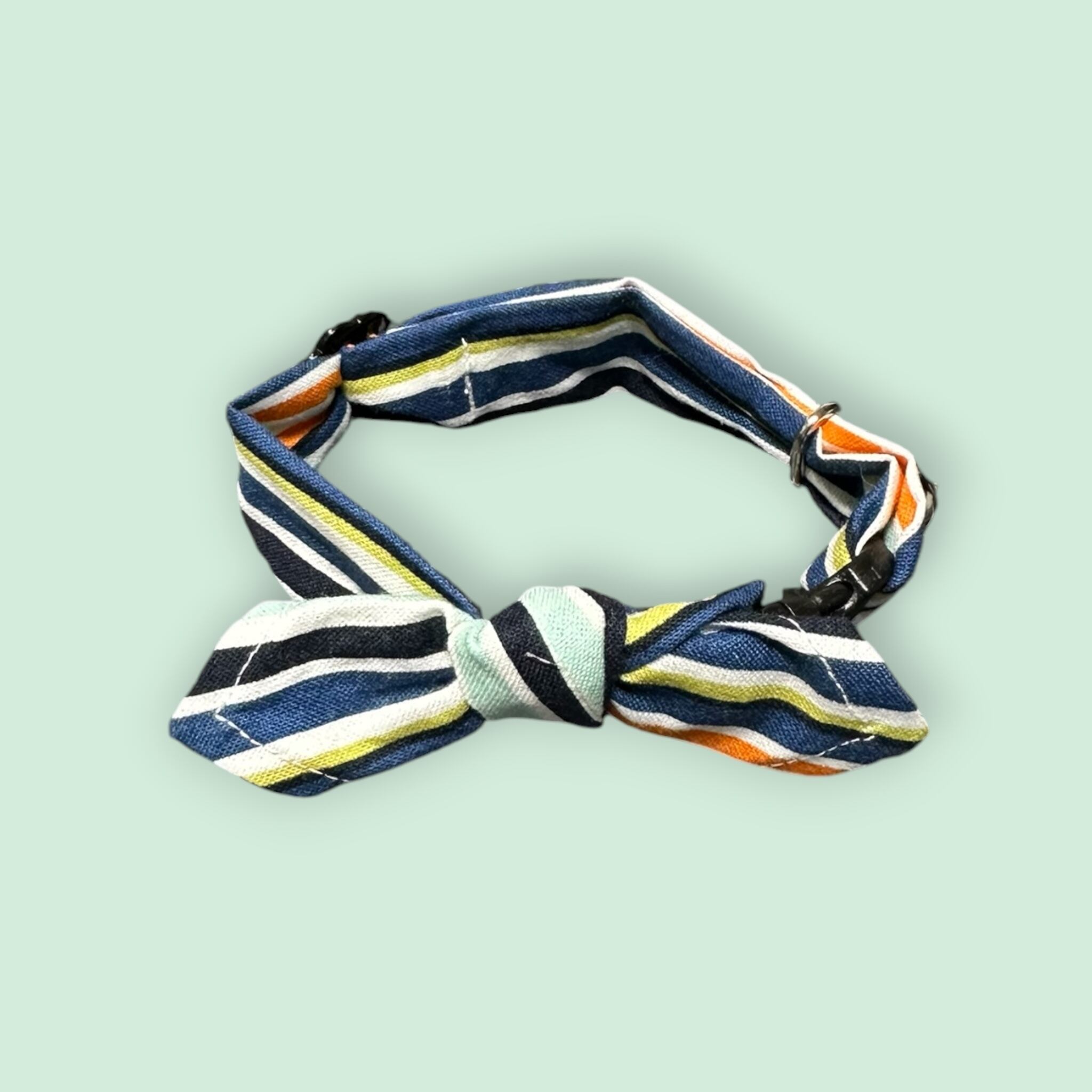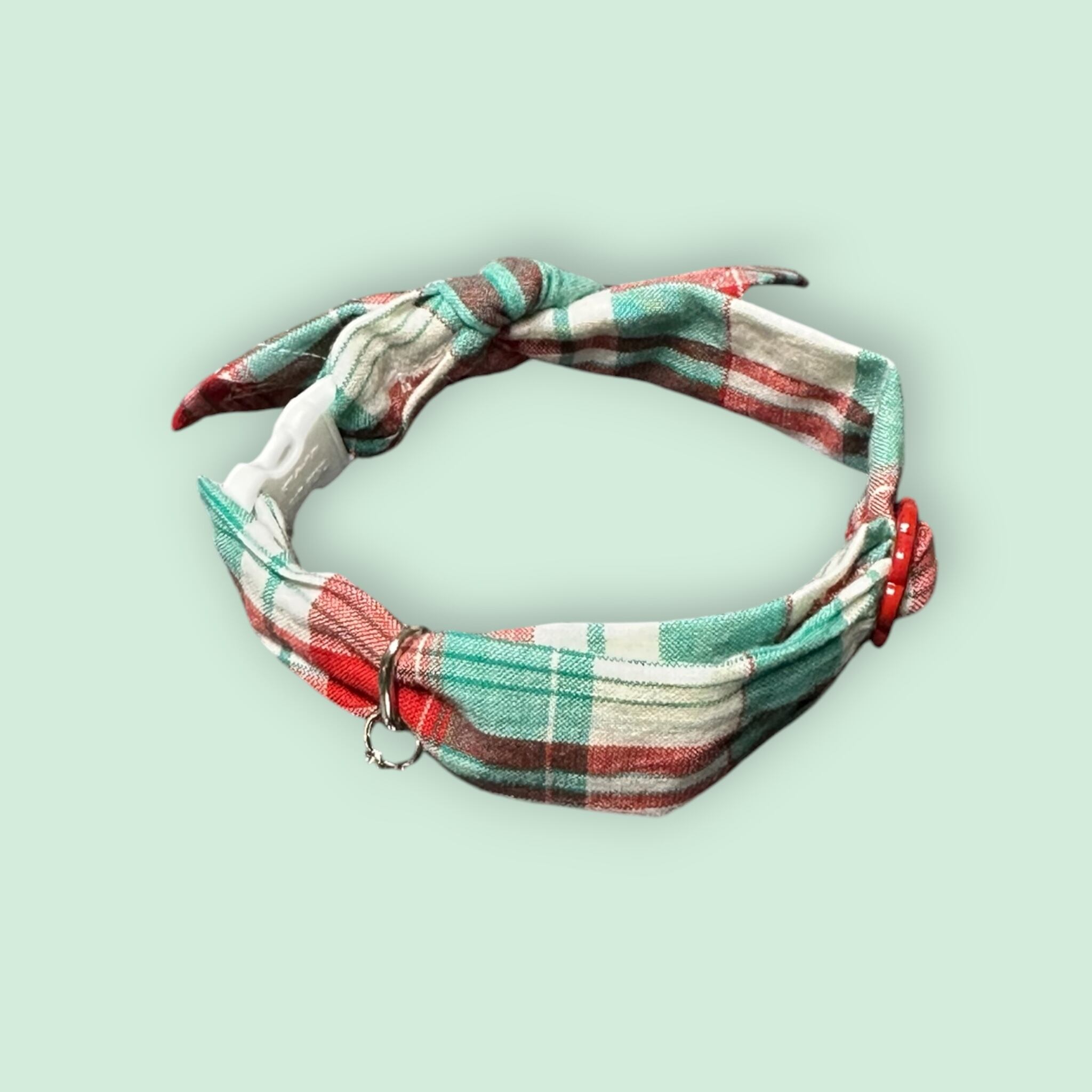 シンプルにバンダナを首に巻いたスタイルの安全バックル付き首輪です。