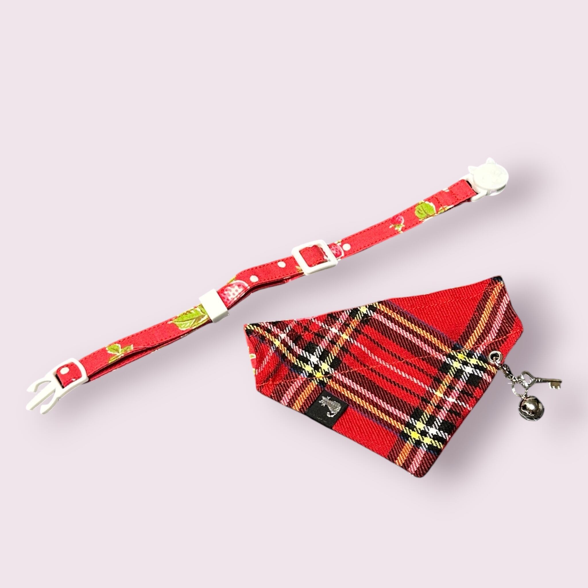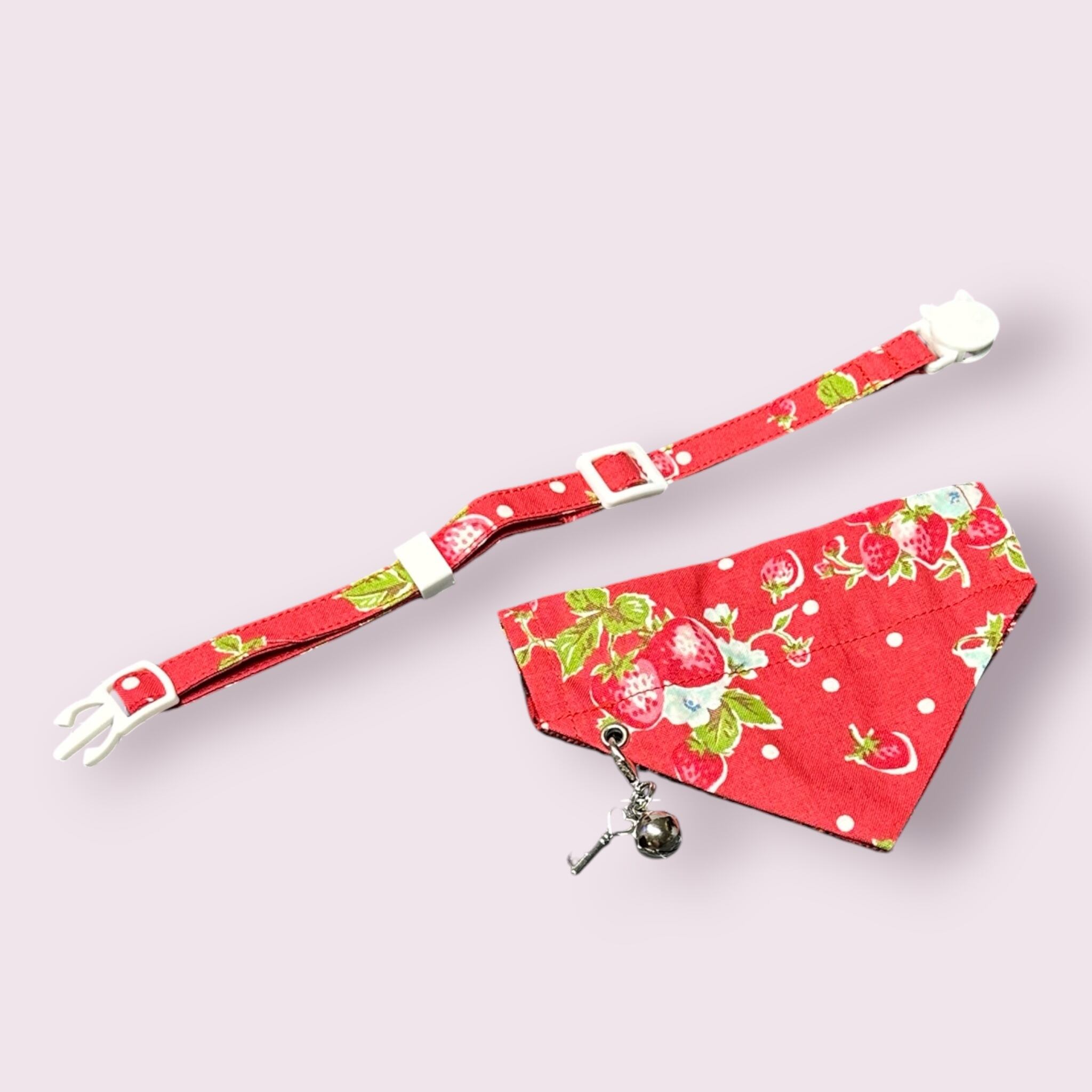 <猫用首輪>取り外しが出来るリバーシブルバンダナ〈レッドイチゴ〉