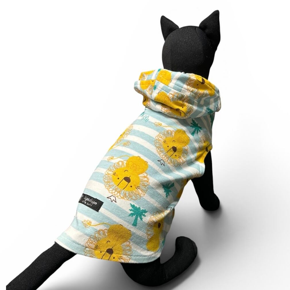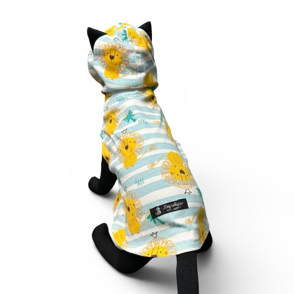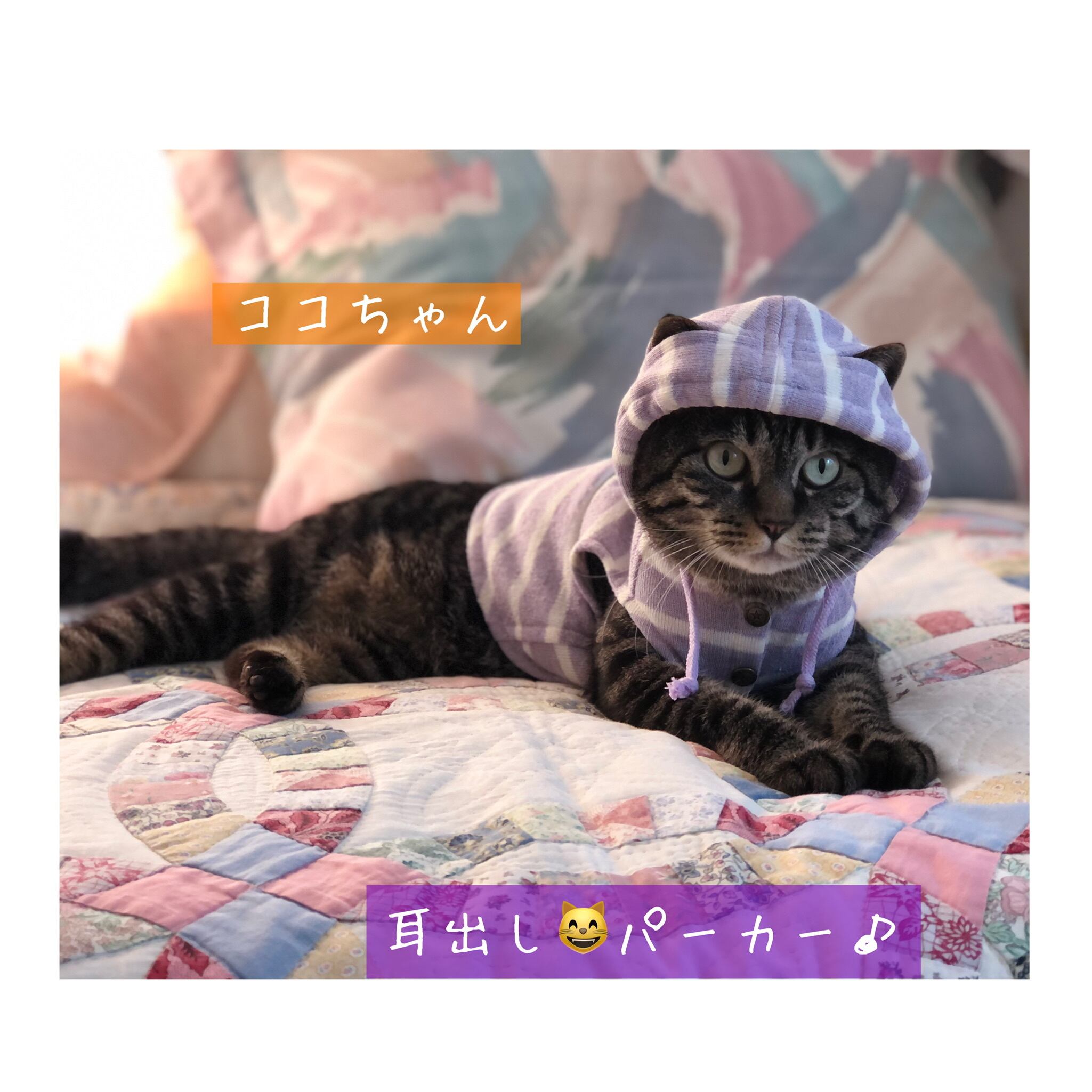 Mサイズは4.5㎏前後の猫ちゃん、Lサイズは5.5㎏前後の猫ちゃんが丁度よさそうですが、ニットなので許容範囲が大きく、Mは4㎏以下の猫ちゃんから、Lは6㎏以上の猫ちゃんまで着用していただけています。