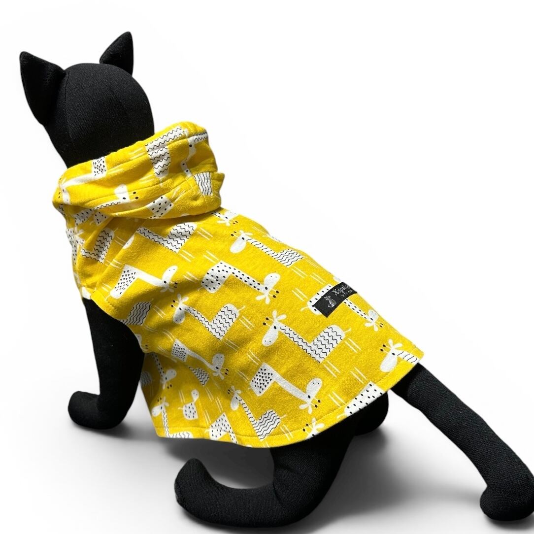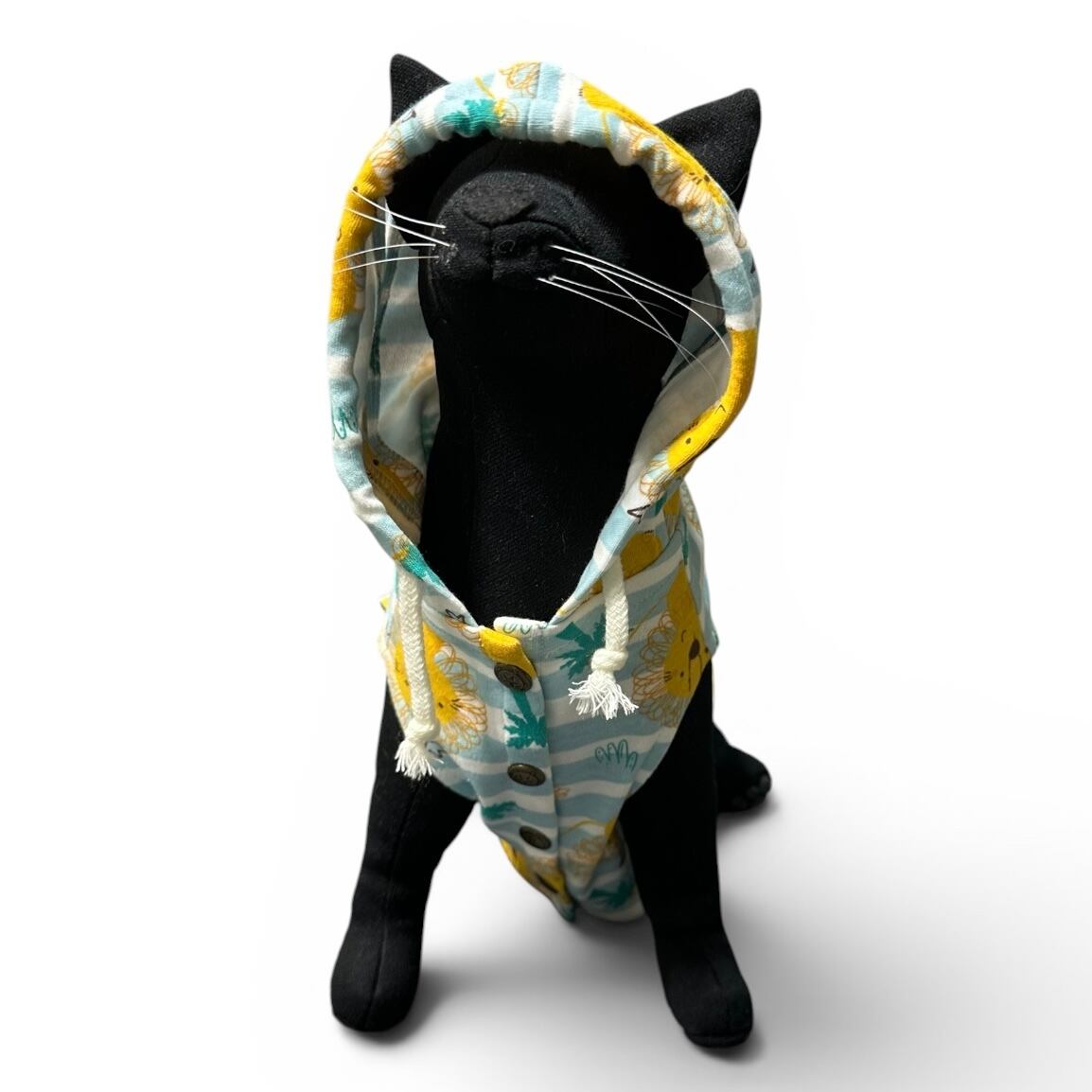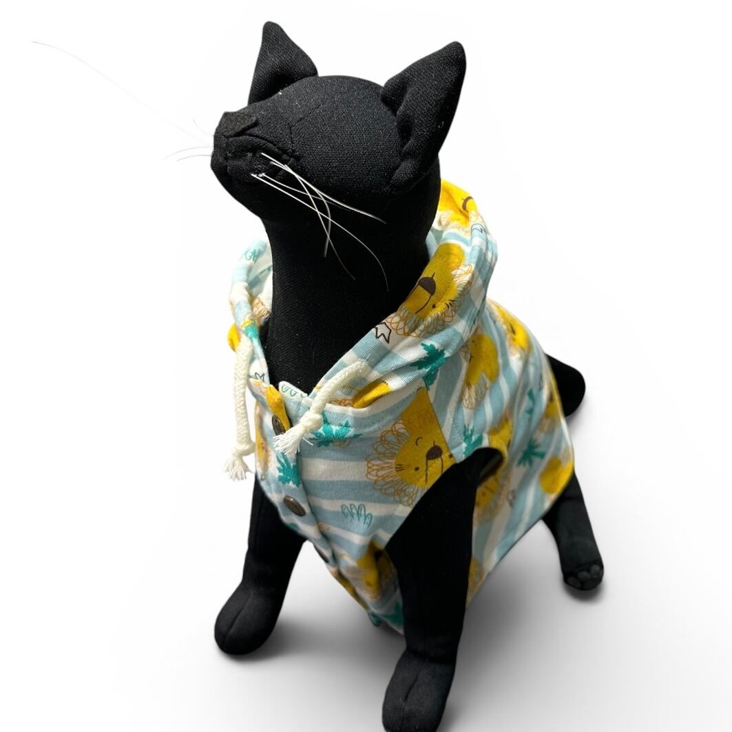 Mサイズは4.5㎏前後の猫ちゃん、Lサイズは5.5㎏前後の猫ちゃんが丁度よさそうですが、ニットなので許容範囲が大きく、Mは4㎏以下の猫ちゃんから、Lは6㎏以上の猫ちゃんまで着用していただけています。