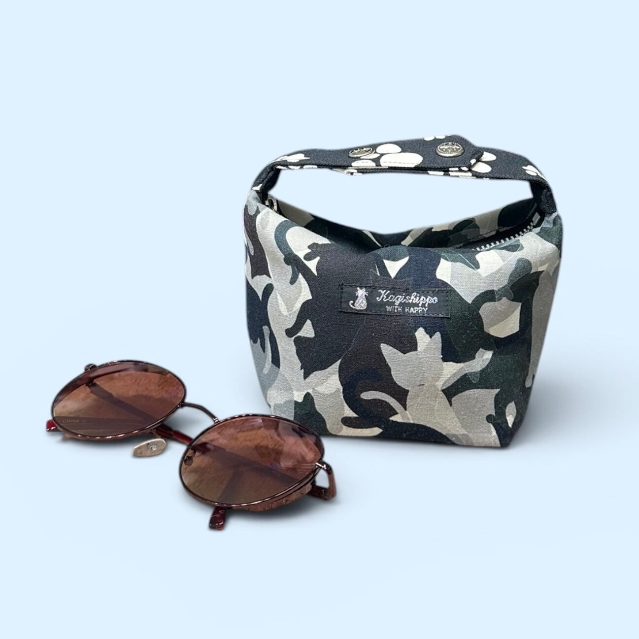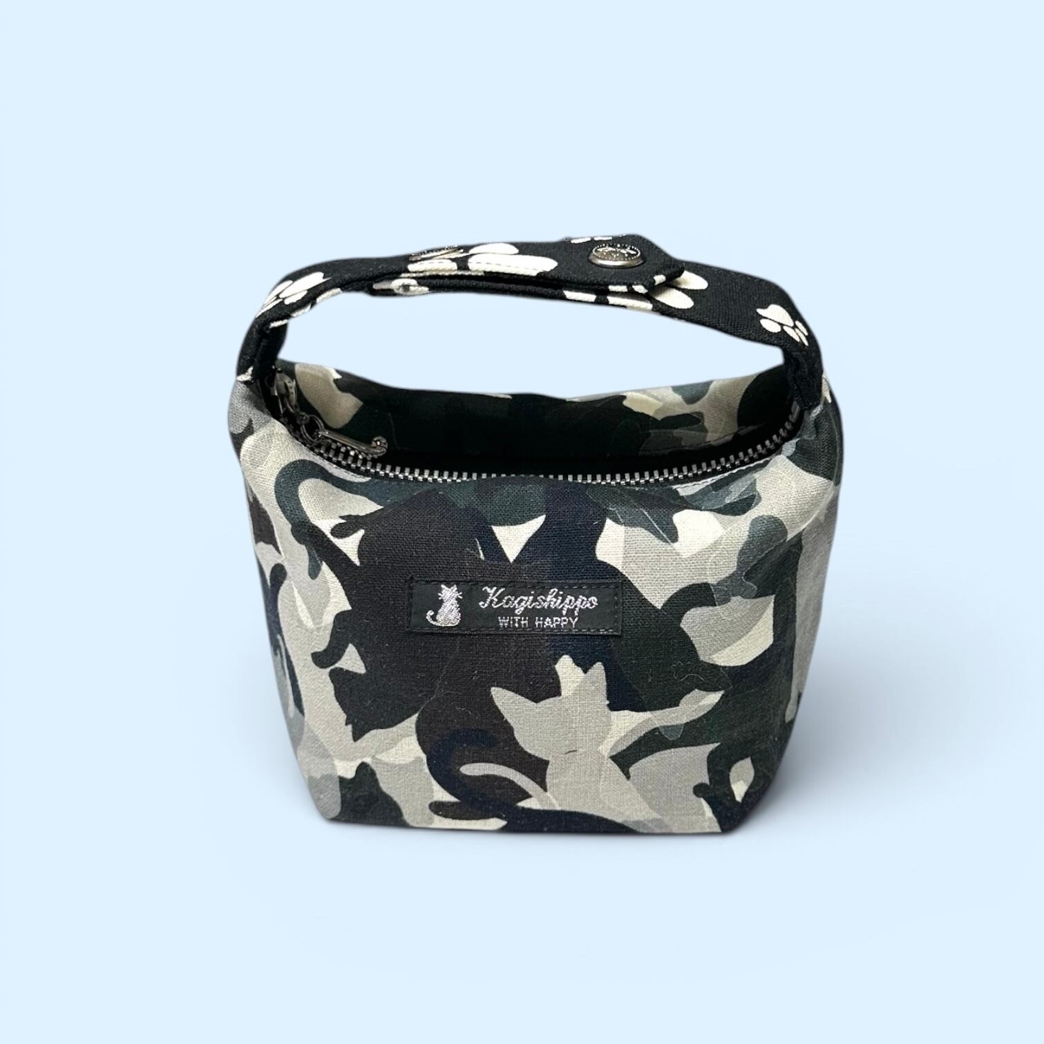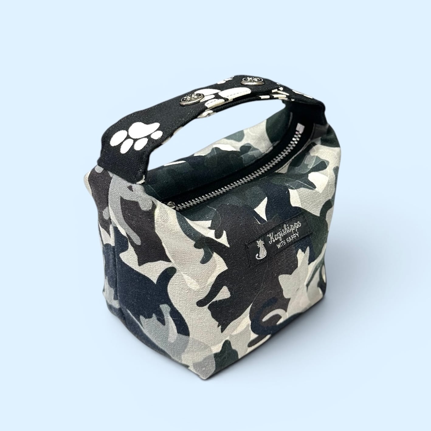 持ち手付き!スクエアポーチ〈オリジナル猫迷彩プリント〉