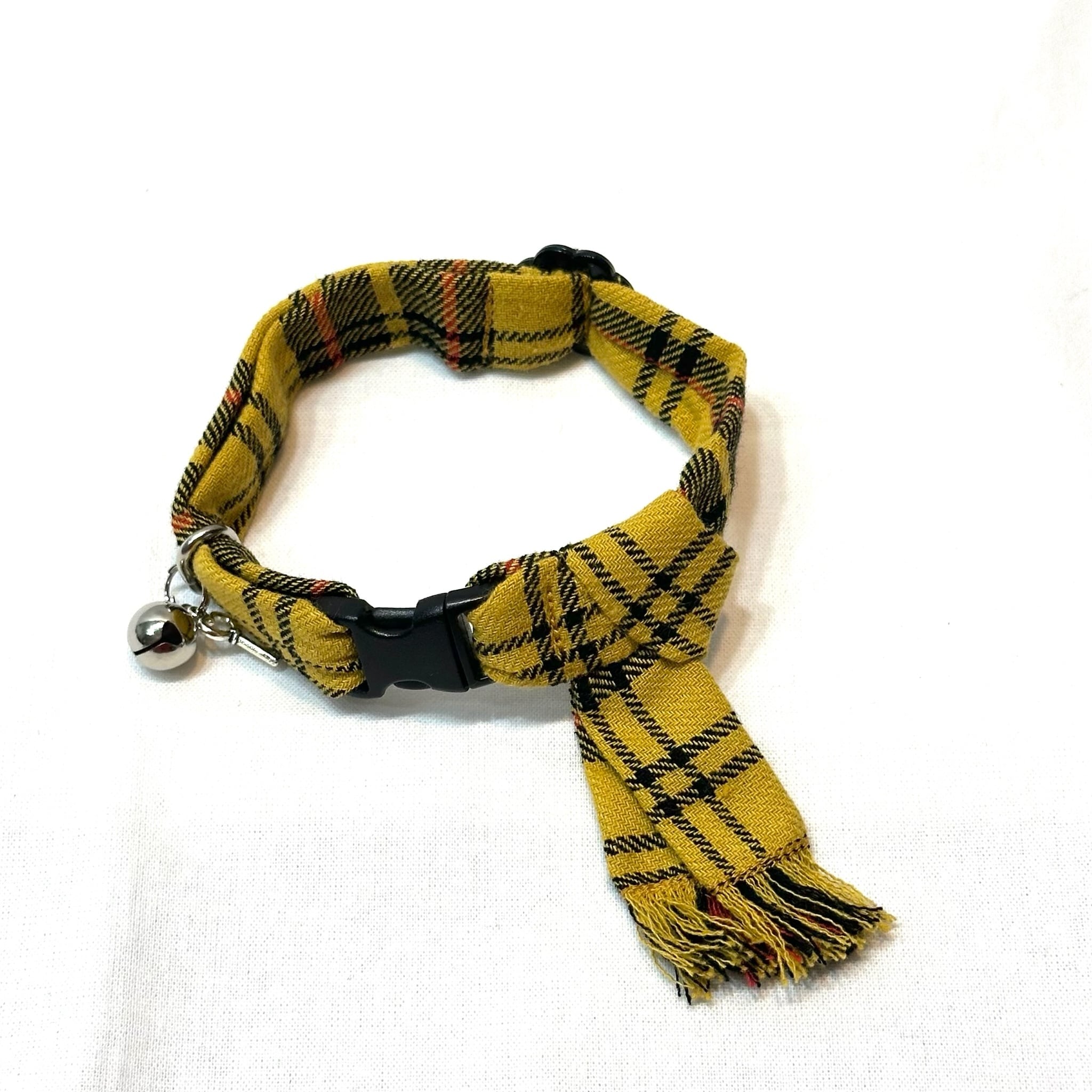 タータンチェックのコットン生地を使用したマフラー風の猫首輪です。