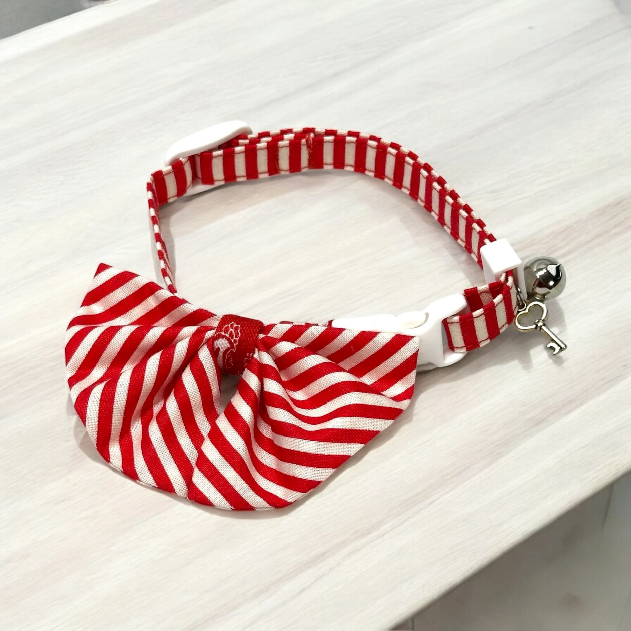 <猫用首輪>プリーツ蝶タイ風首輪〈ストライプ〉