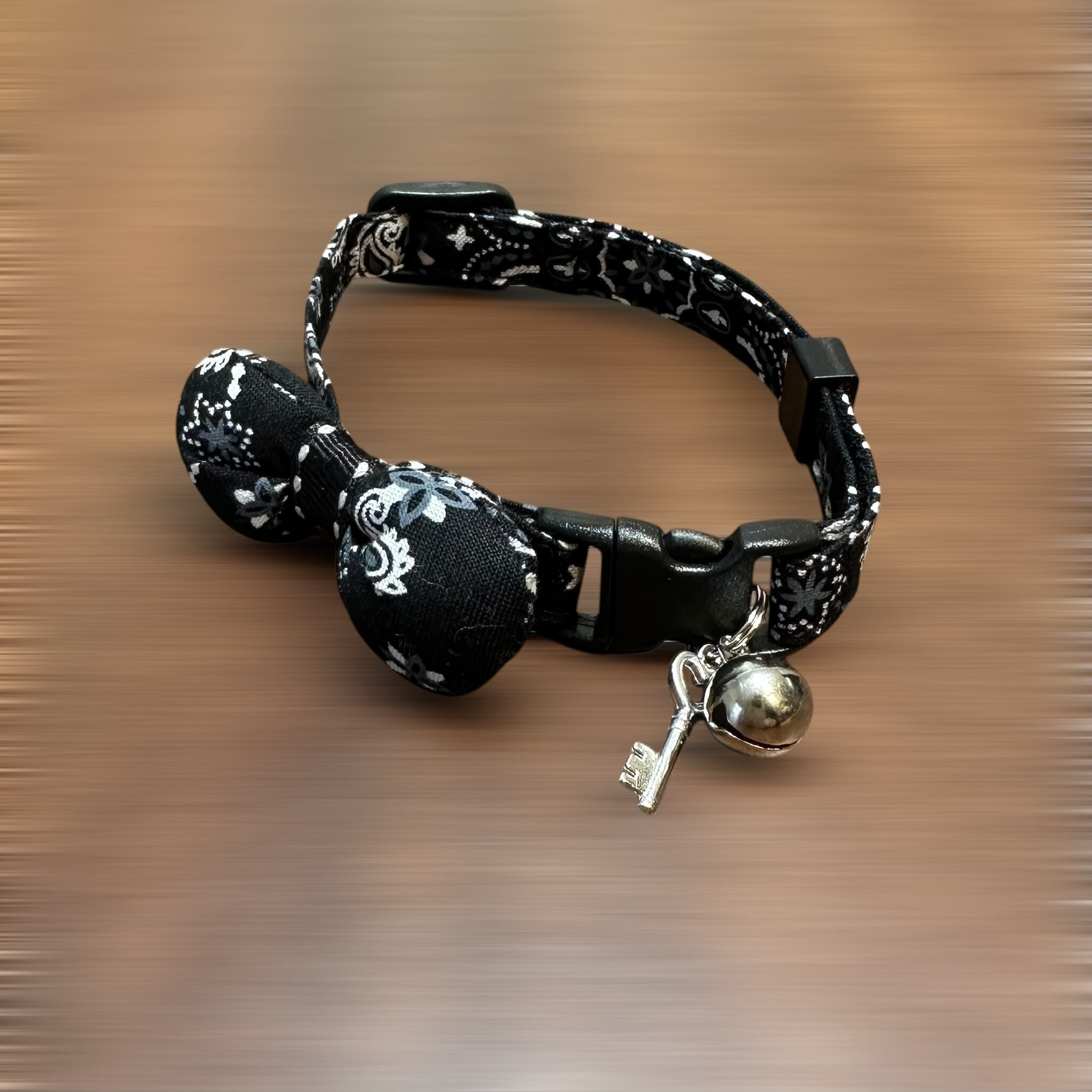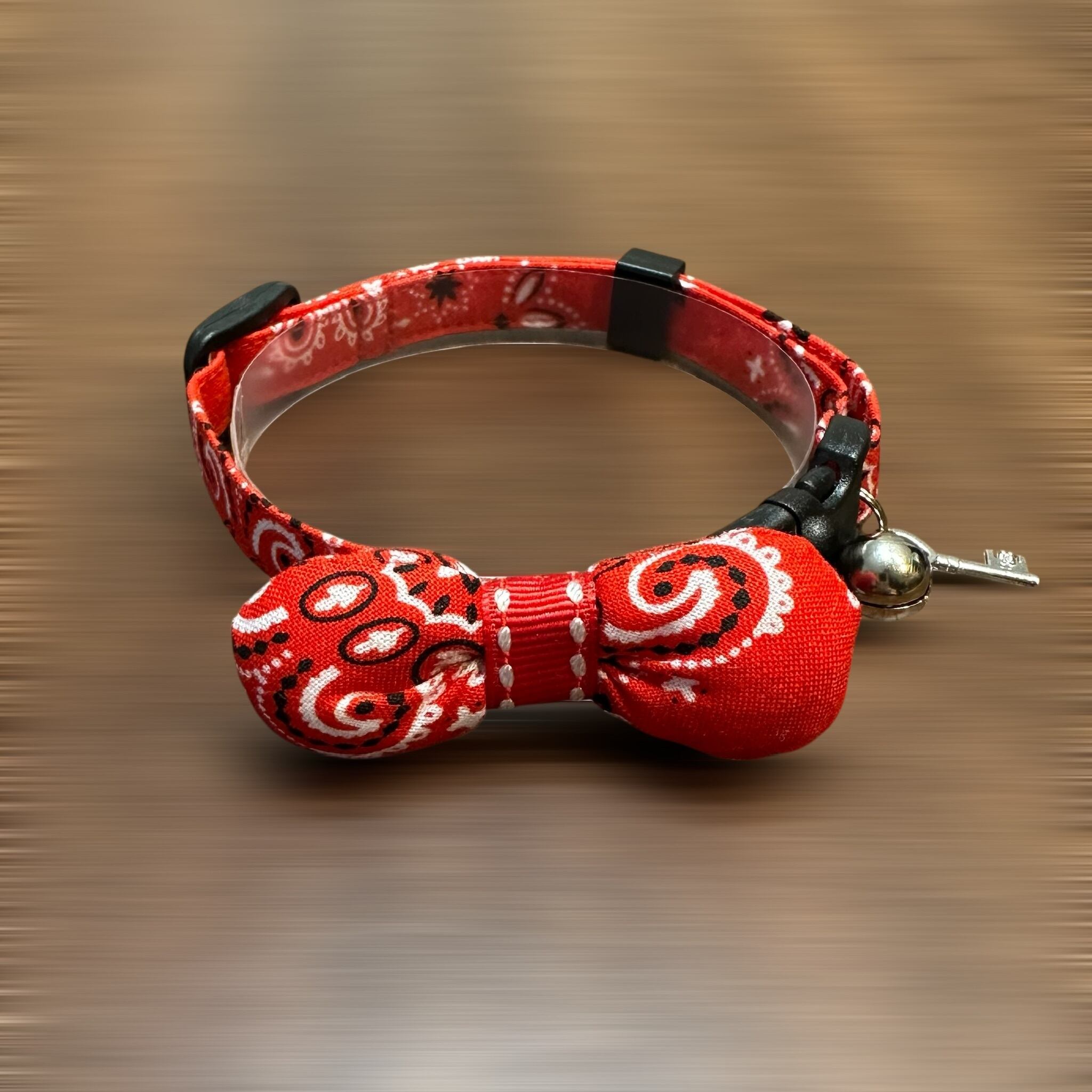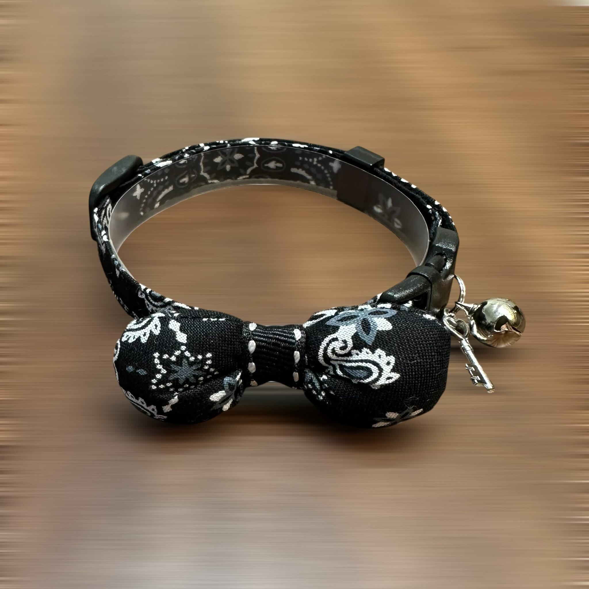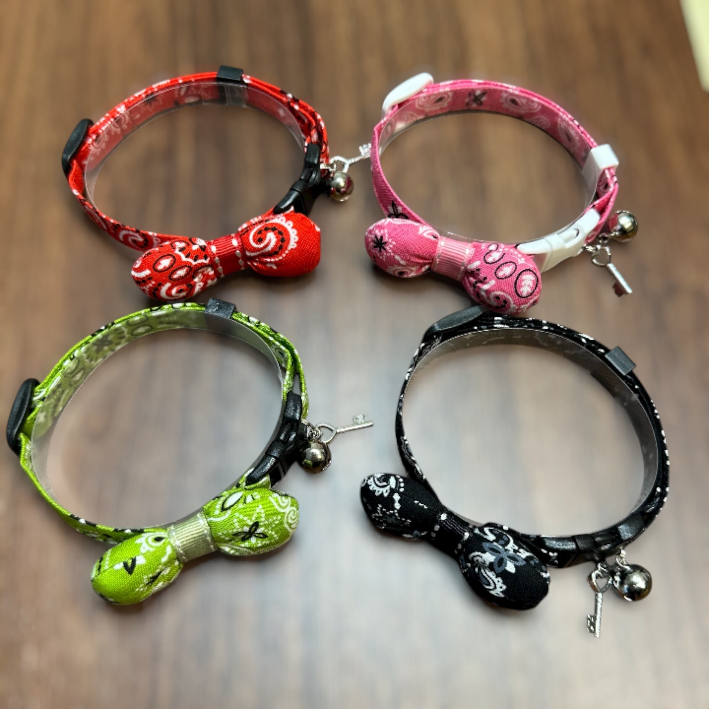 <猫用首輪>ぷっくり蝶タイ風猫首輪〈バンダナペイズリー柄〉
