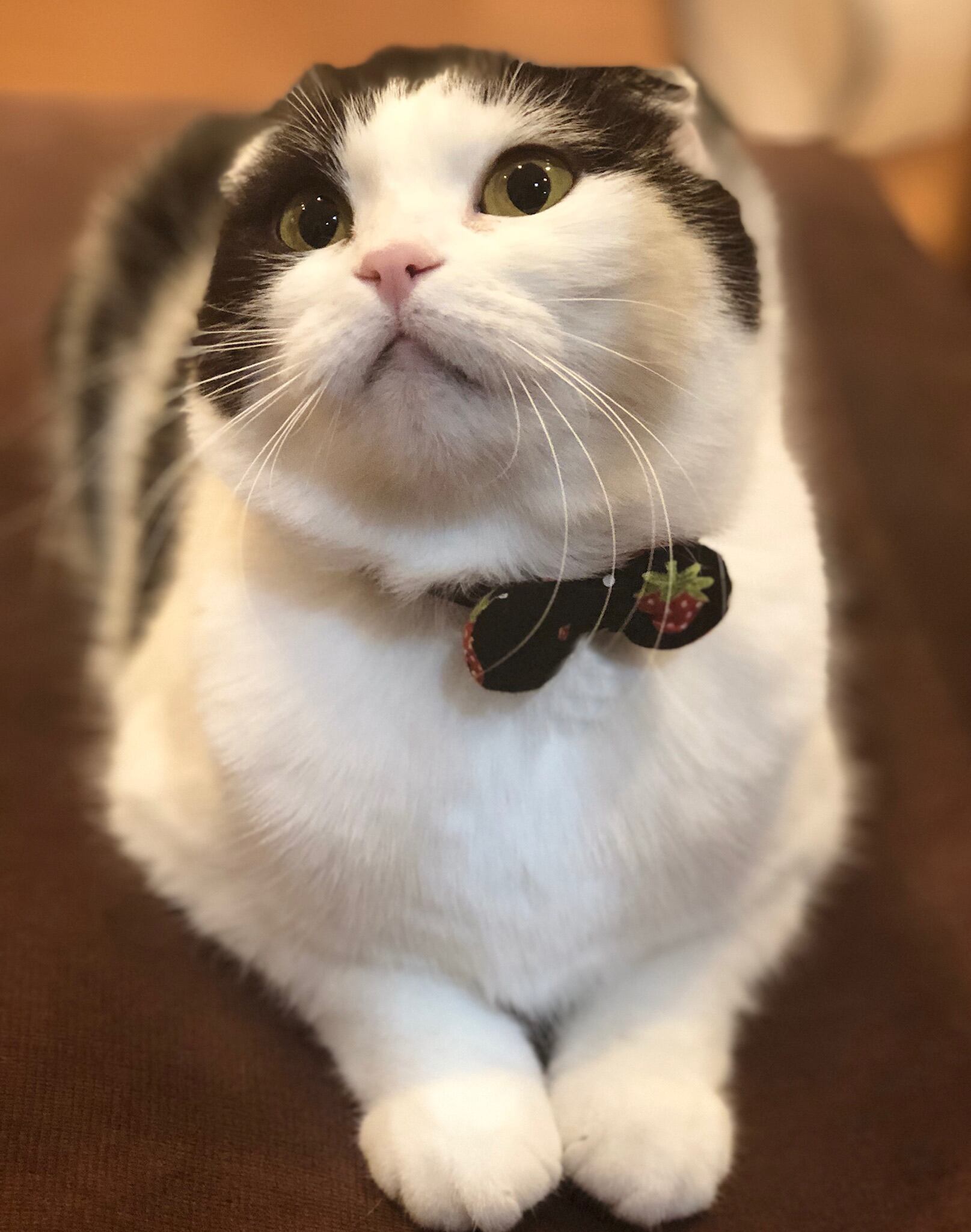 定番のかたち、リボンがぷっくりした蝶タイ風の猫ちゃん用首輪です。