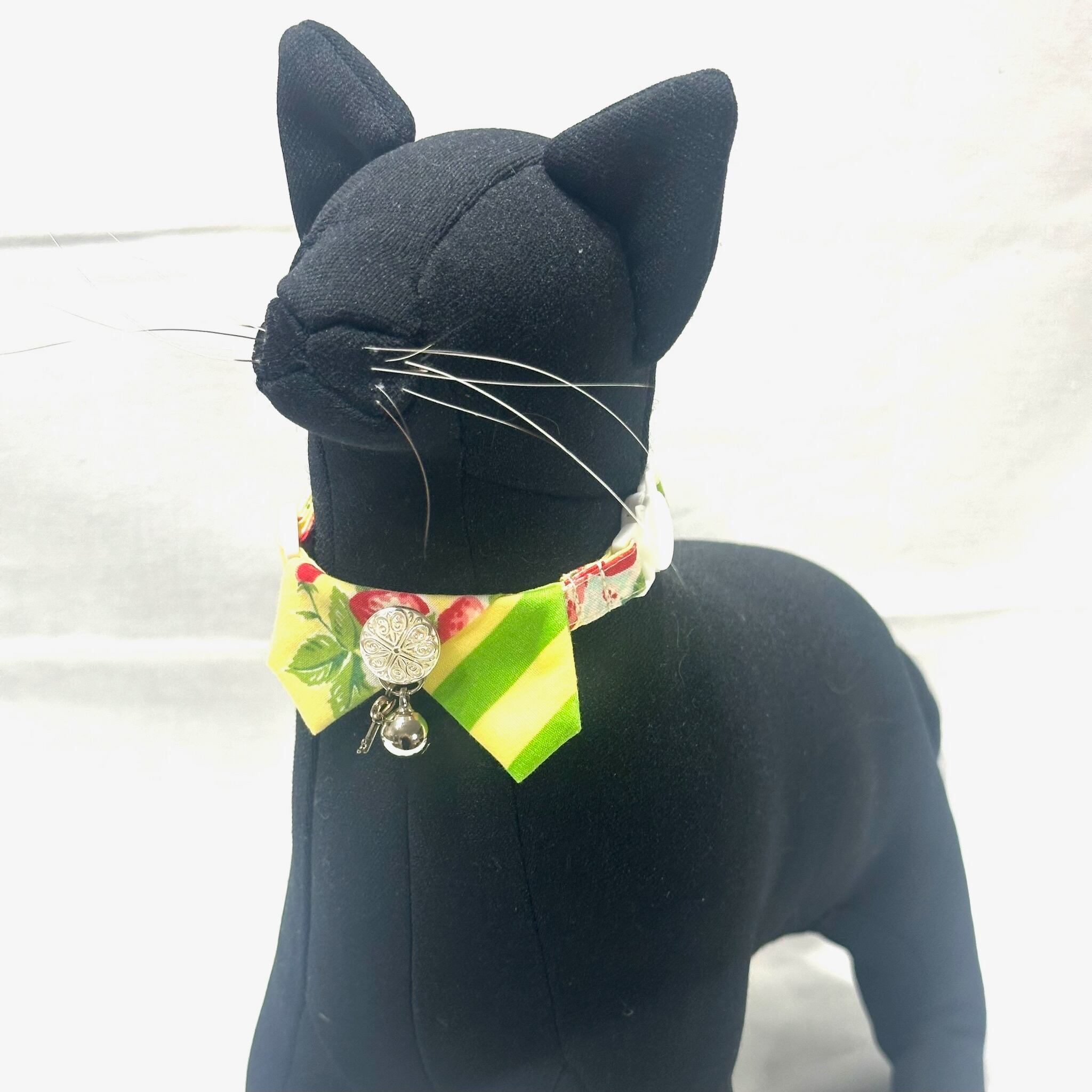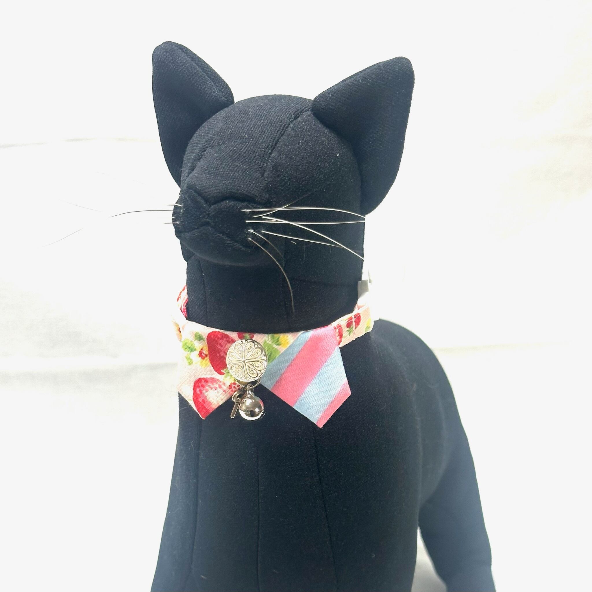 <猫用首輪>シャツ襟風コンチョ付猫首輪〈いちごストライプ〉