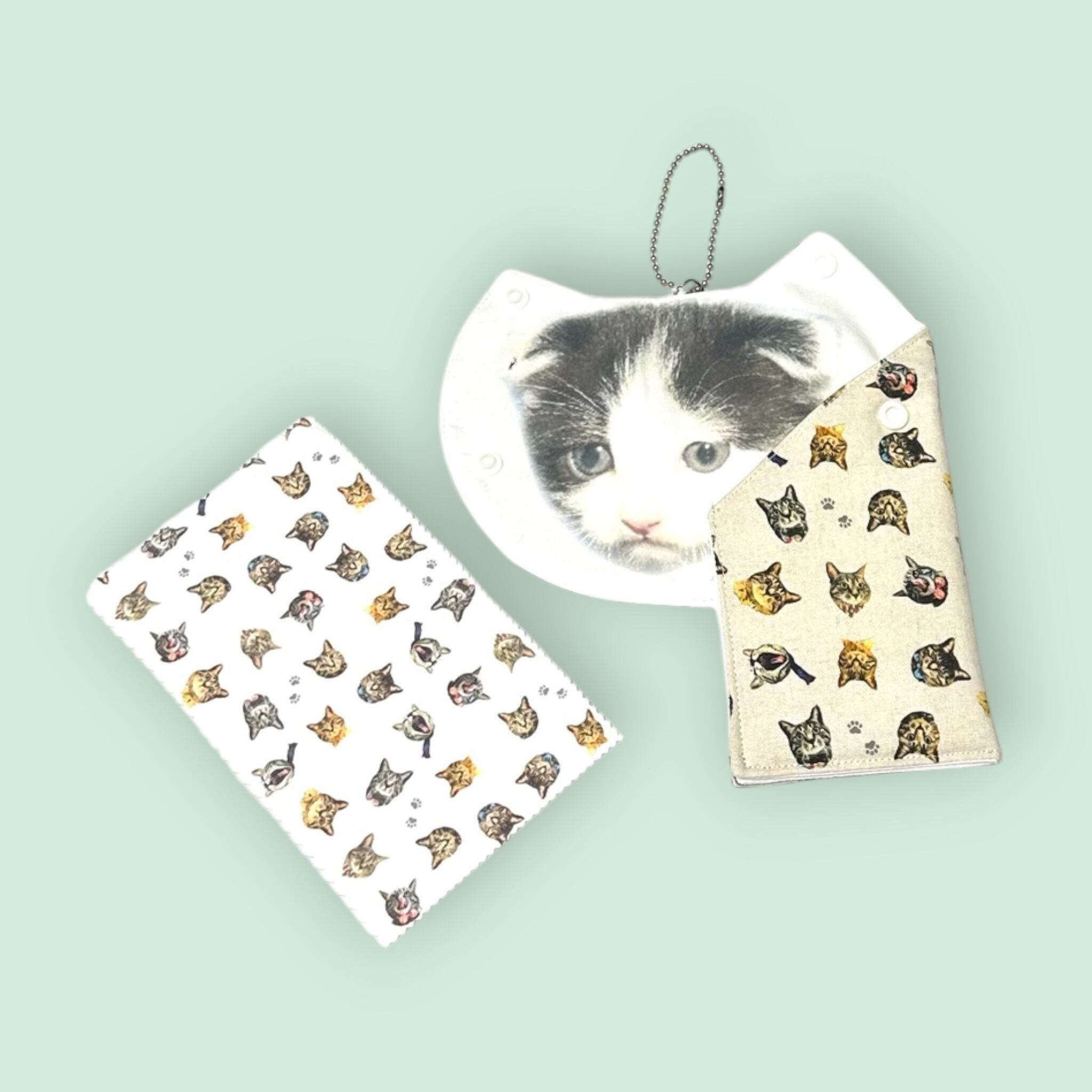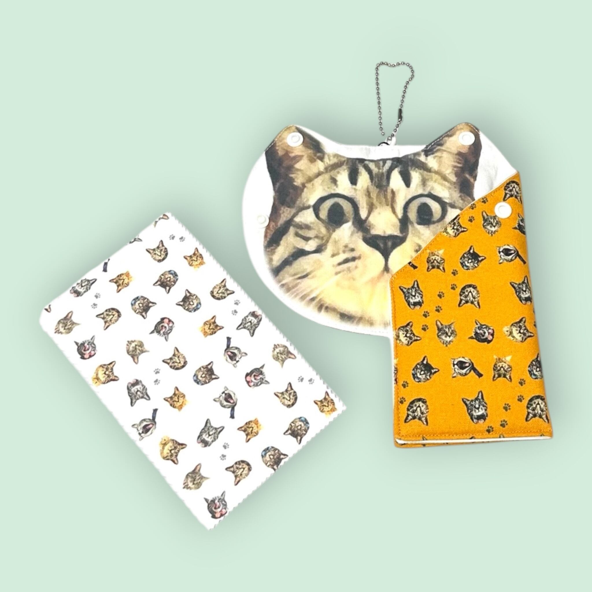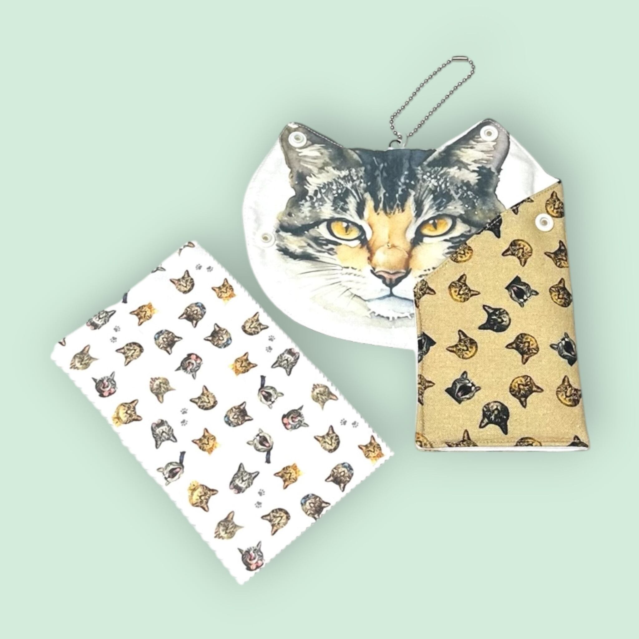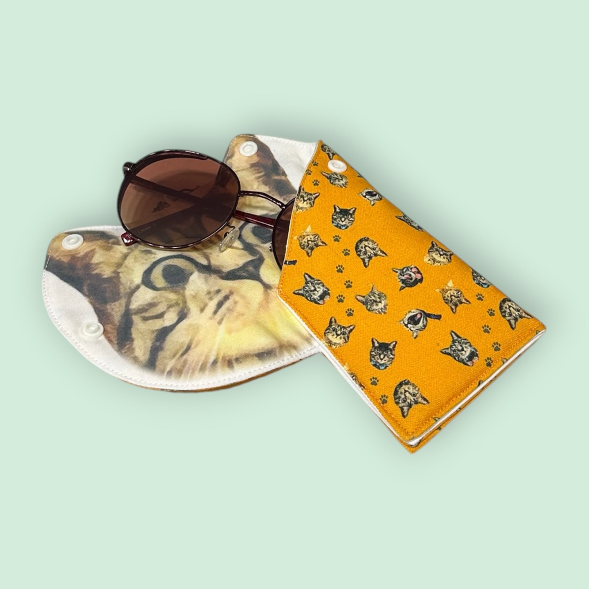 オリジナルの猫柄生地を外側に使い、内側にはドーンとでっかく猫ちゃんの画像を編集してプリントした生地を使ったソフトなメガネケースです。