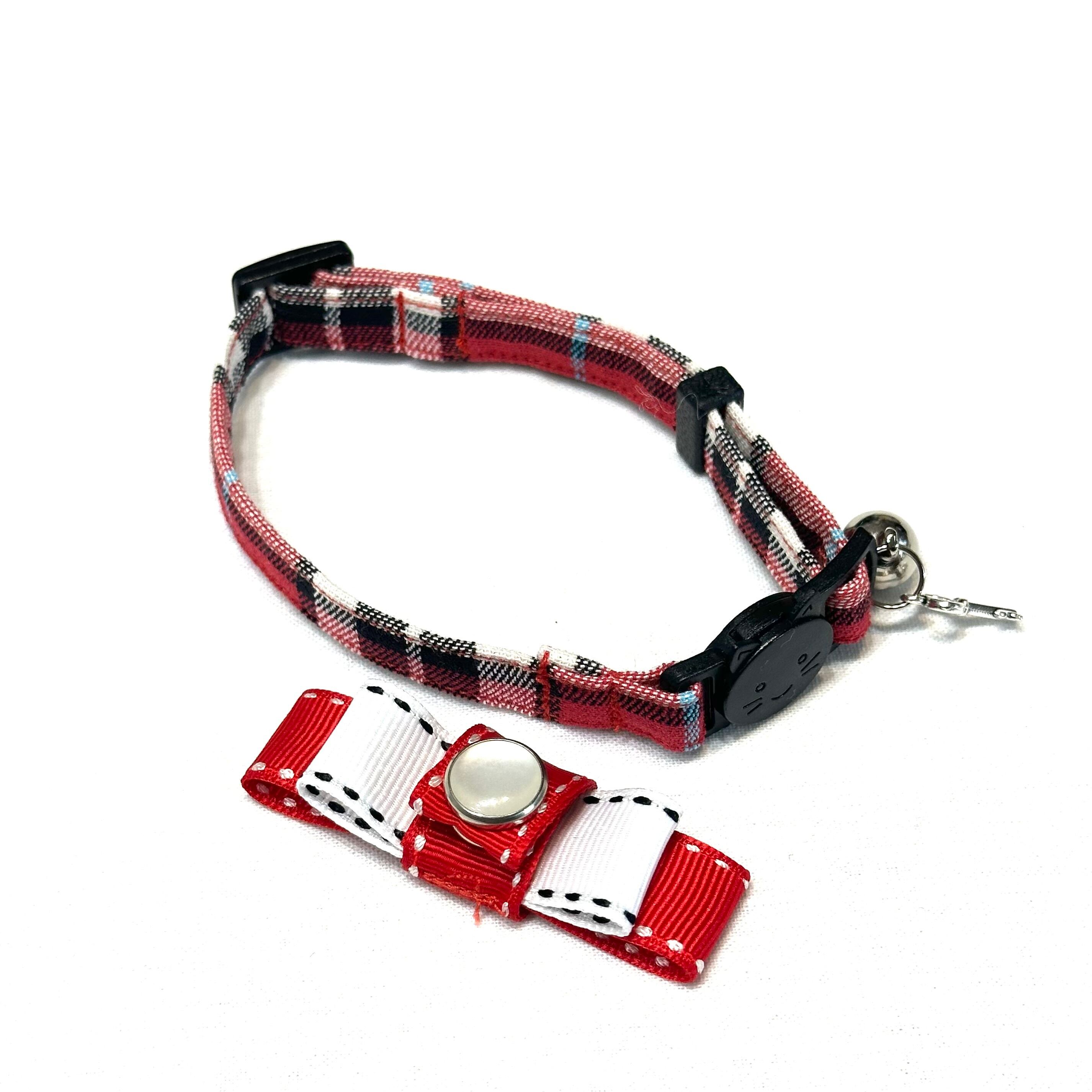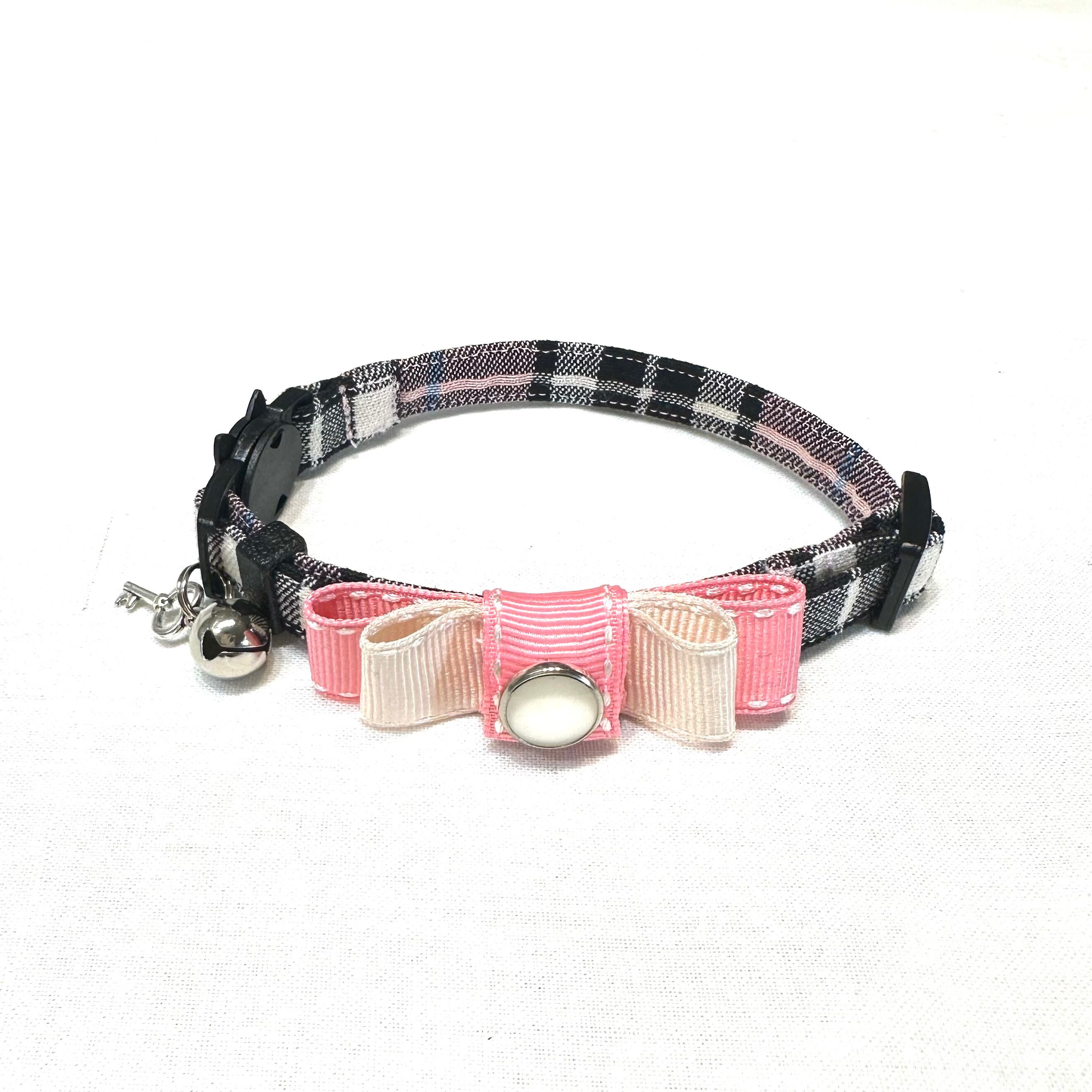 取り外し出来るグログランリボンがついた、2wayタイプの猫ちゃん用首輪です。