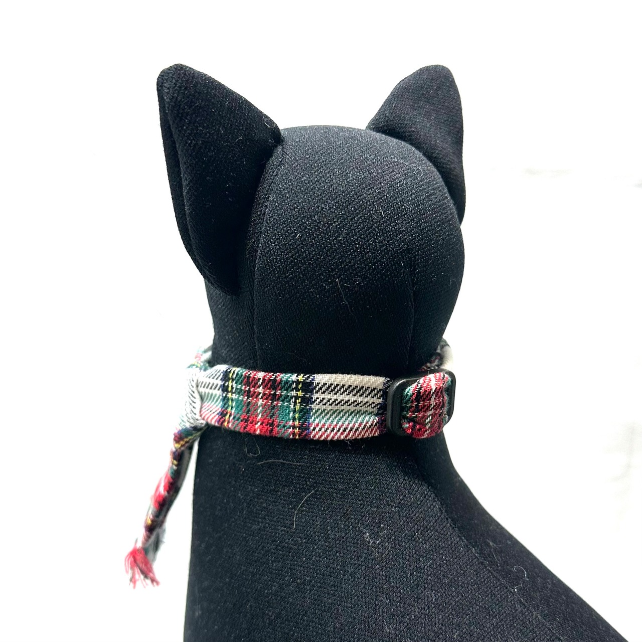 タータンチェックのコットン生地を使用したマフラー風の猫首輪です。